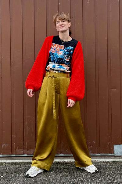 • Rebekka trägt die goldene Bundfaltenhose in Grösse 40  (Instagram: gemeine_wildrebe)